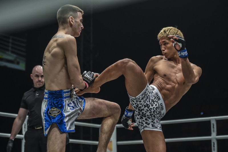 マイケルがプレッシャーをかけ続ける中、内藤は耐えながら左右ロー、ミドルで応戦