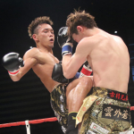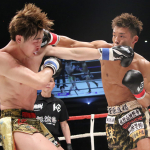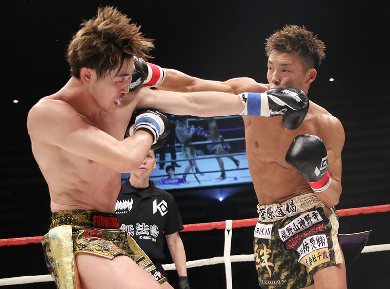 ストレートの攻防を繰り広げるバズーカ(右)と古村
