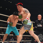 キレのあるフックの連打でKOした実方