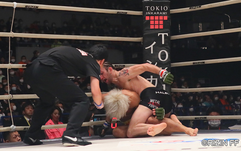 ダウンを奪い、パウンドで追い打ちをかけるとレフェリーが試合を止めた