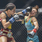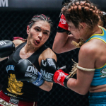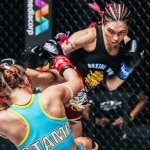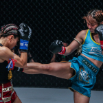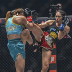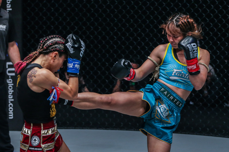 スタンプがムエタイのミドルキックで攻める