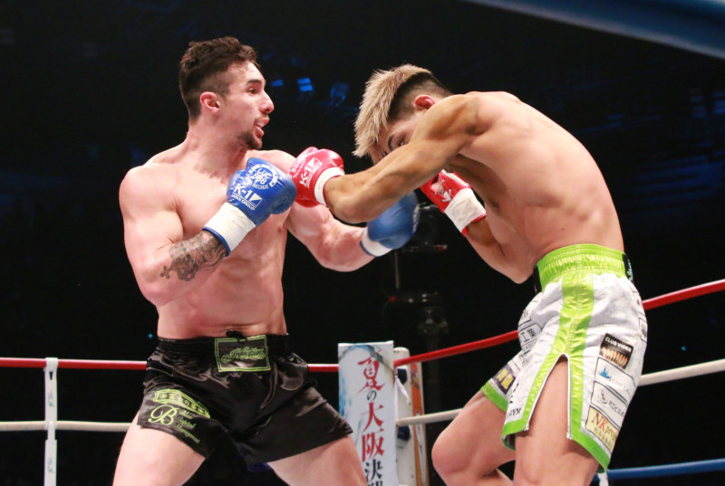 左フックがクリーンヒット