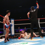 リングに仰向けに倒れる小澤