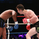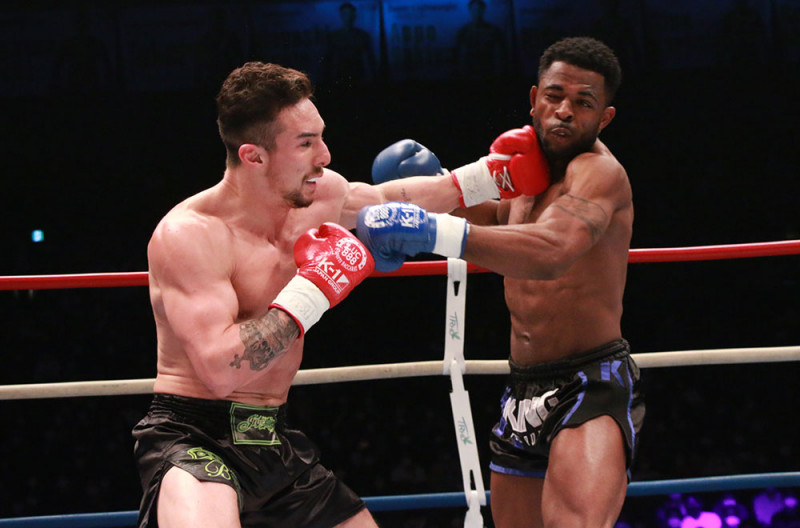 強烈な左を打ち込む木村