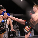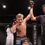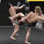HIROYUKIの顔面への前蹴りがヒットし、相手は大きくのけ反る(c)ABEMA