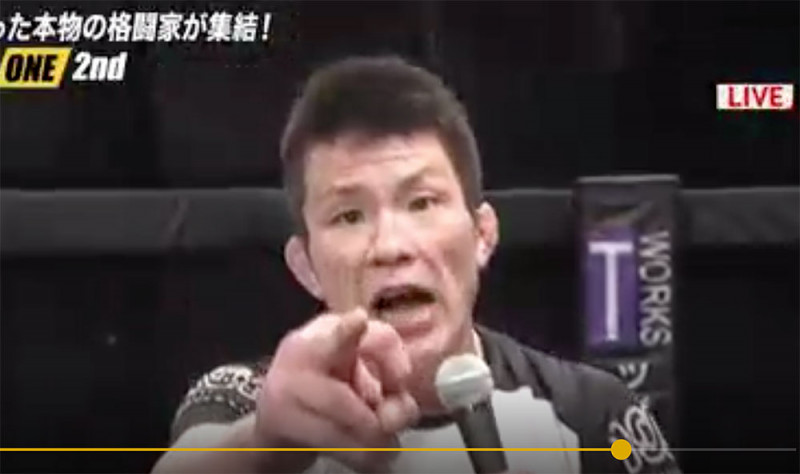 試合後のマイクで熱いメッセージを送る青木(C)ABEMA
