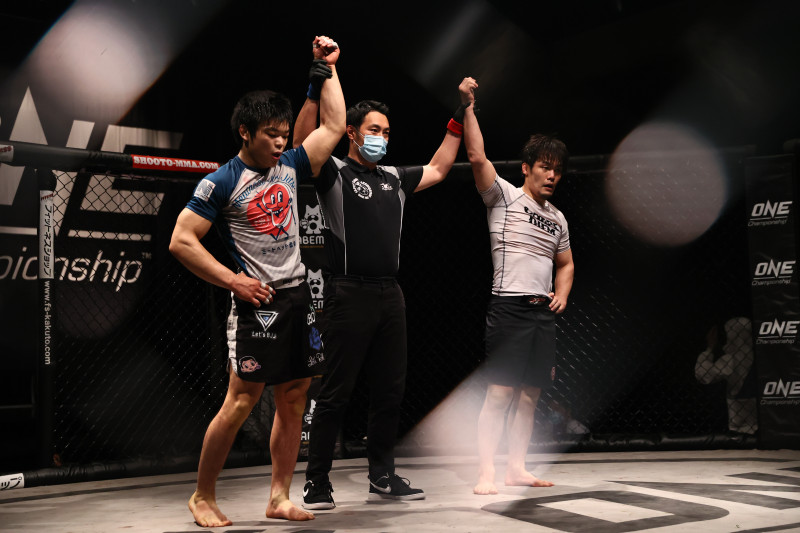 岩本(左)と世羅。高レベルのグラップリングの攻防は決着つかずドローに (C)SUSUMU NAGAO/SUSTAIN