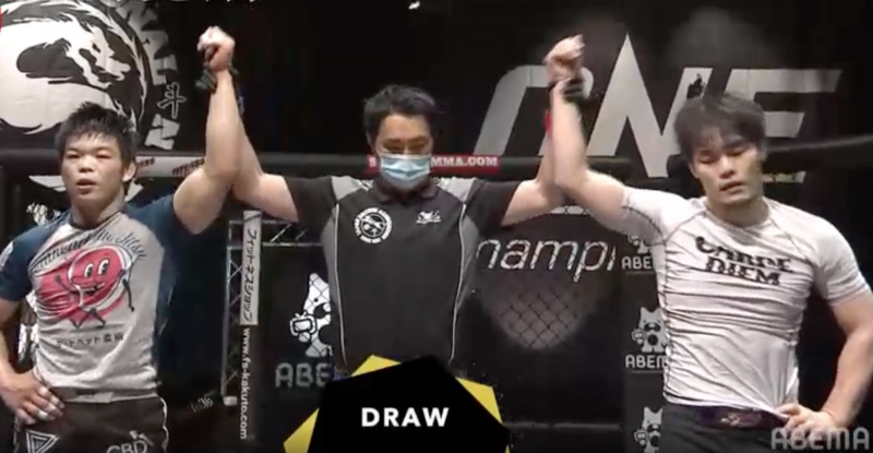岩本(左)と世羅。高レベルのグラップリングの攻防は決着つかずドローに。(c)ABEMA