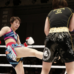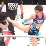 この連続ローキックでMARIの外ももが赤く腫れる(C)RISE