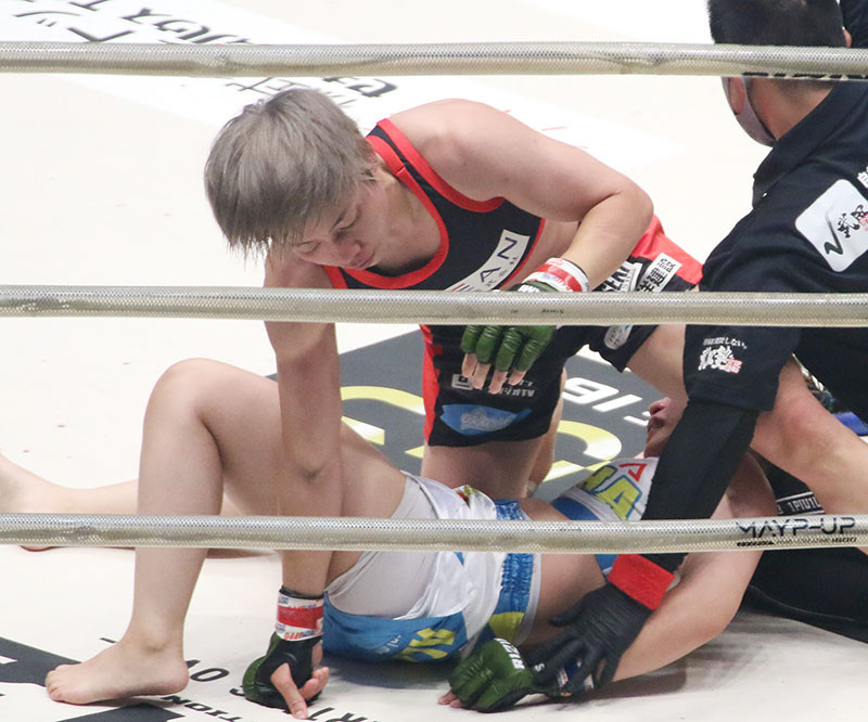 浜崎がアームロックで勝利した