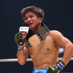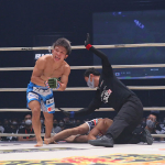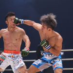 竿本がパウンドを追撃、レフェリーが止めに入る