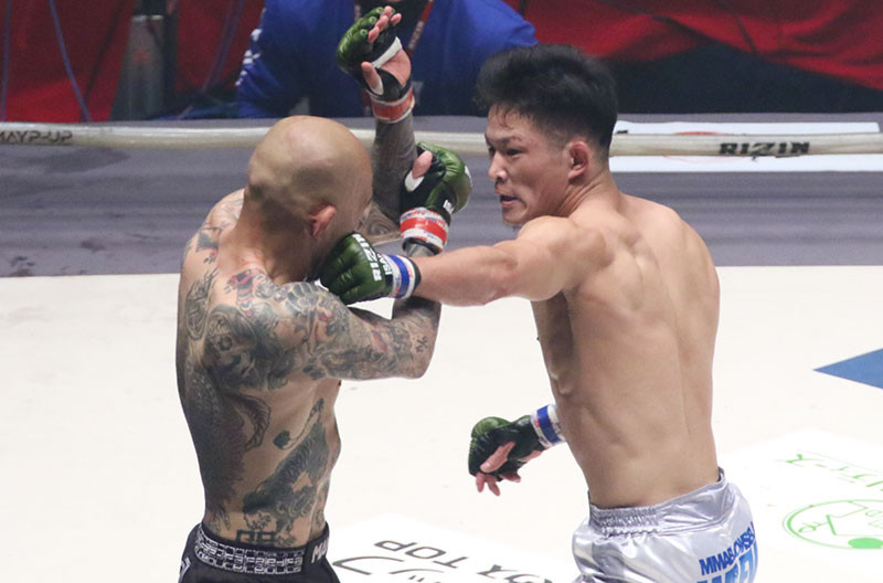 パンチで詰めていく青井(右)