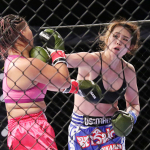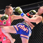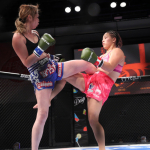 初のキック戦で判定勝利したKINGレイナ(左)写真提供:DEEP事務局