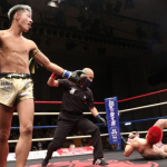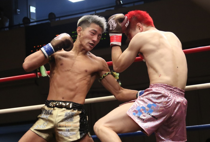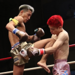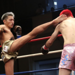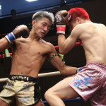 強烈なボディを打ち込む龍聖
