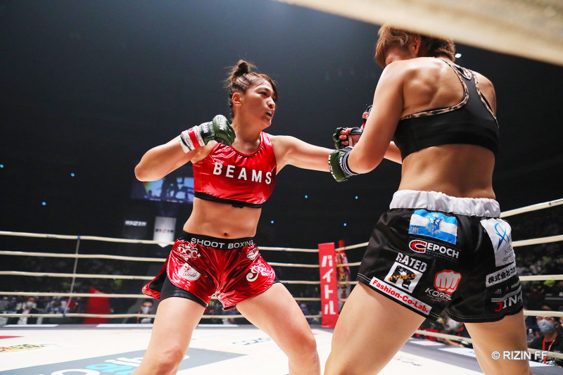 RENAが得意のパンチで攻め込む