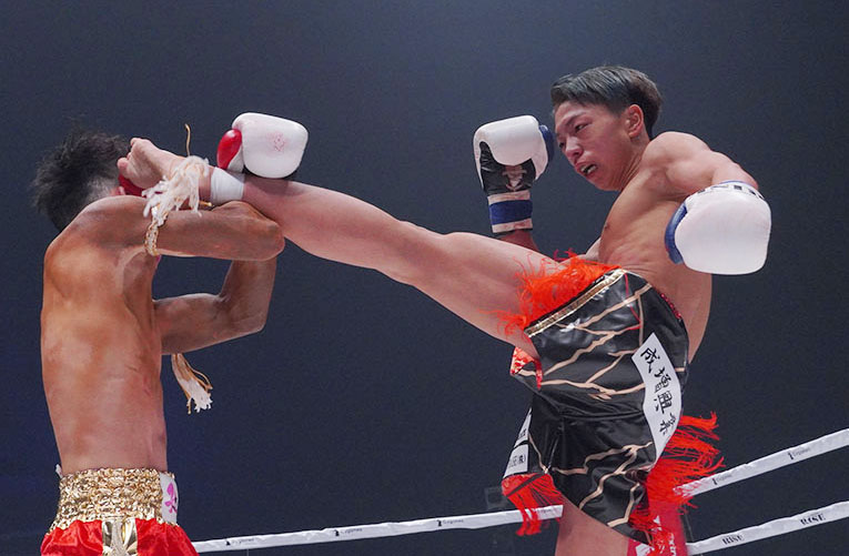 鋭いハイキックを飛ばす松谷