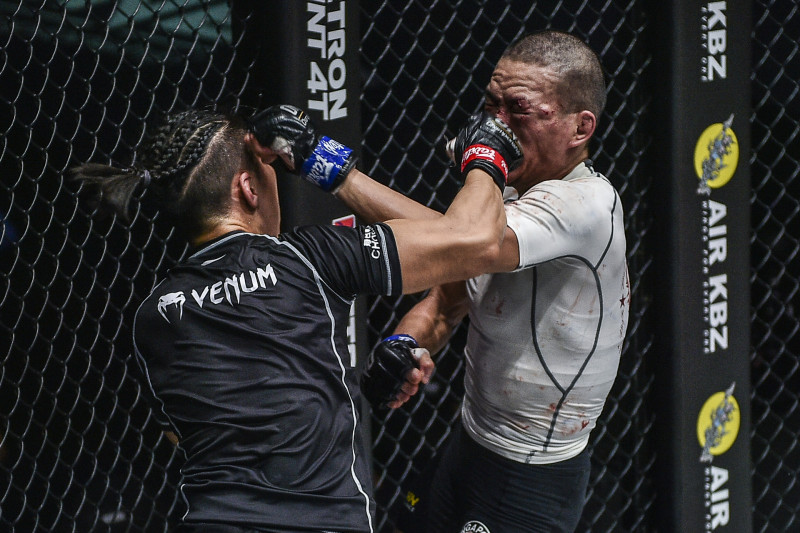 テオの顔面にパンチを入れるジンナン(c)ONE Championship