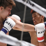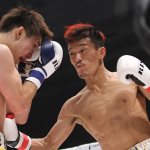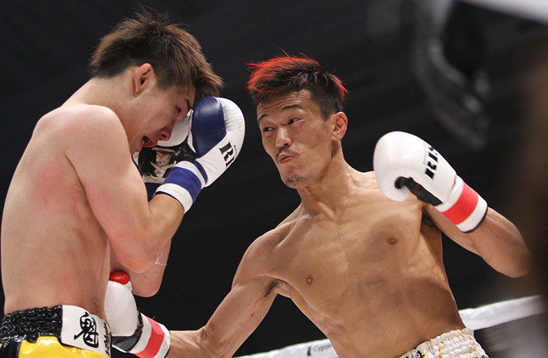 強烈なパンチを叩き込む京谷(右)