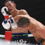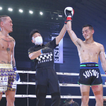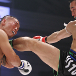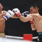 リーチの長いキックを当てる中野