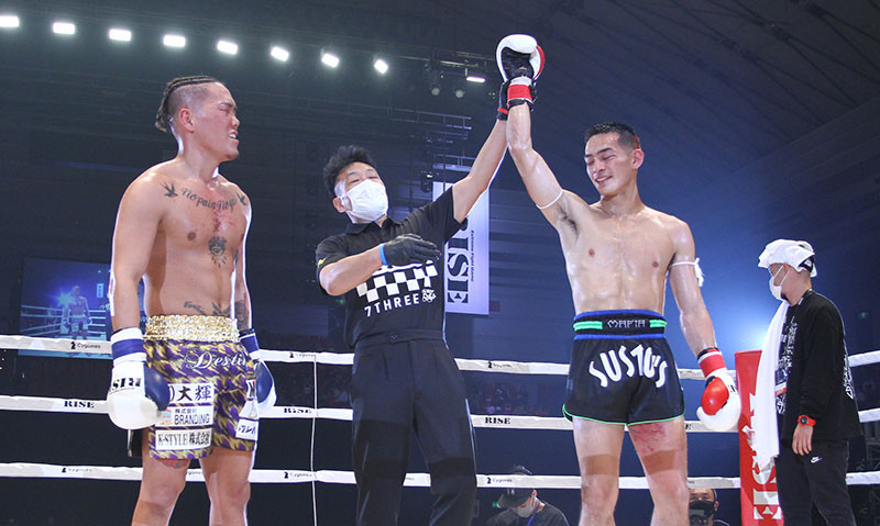 勝利し笑みを浮かべた中野(右)と、悔しい表情の山口(左)