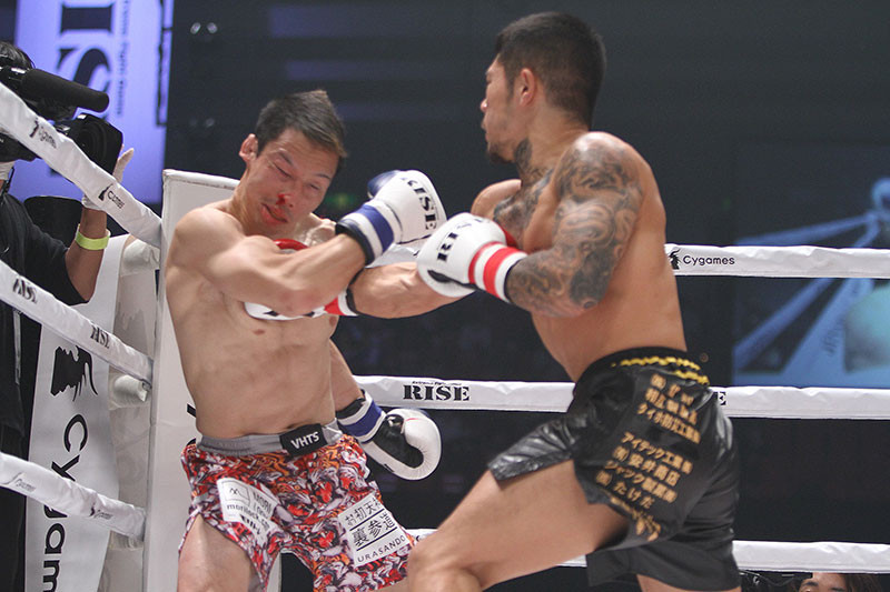 中村の強打が魚井の顔面を強襲