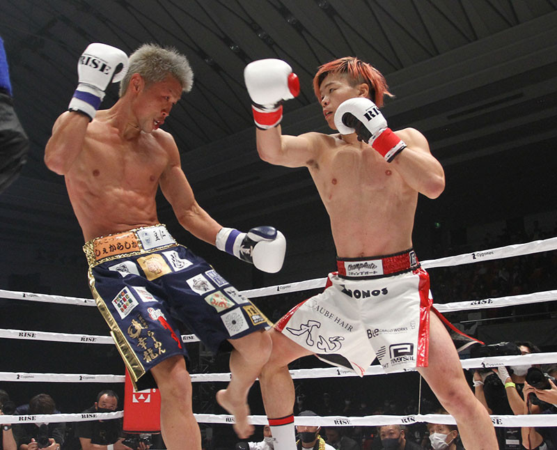 那須川天心を相手にキャリア最後の戦いに挑む裕樹(左)