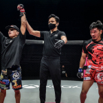 ONE初戦でランカーを破った修斗世界王者・箕輪(左)