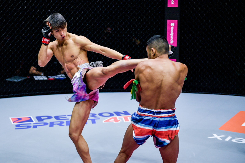 相手の負傷によりTKO勝利を飾ったMOMOTARO(左)©️ONE Championship