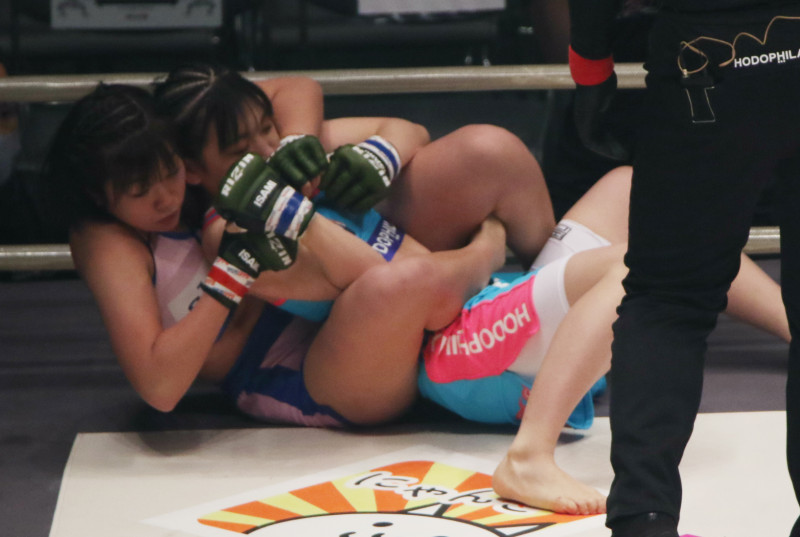 開始早々、バックを取るさくら(左)