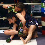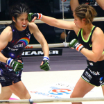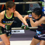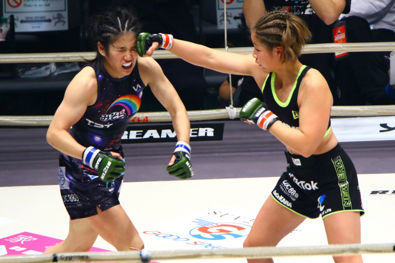 浅倉(右)の右ジャブがあいの顔面にヒット!