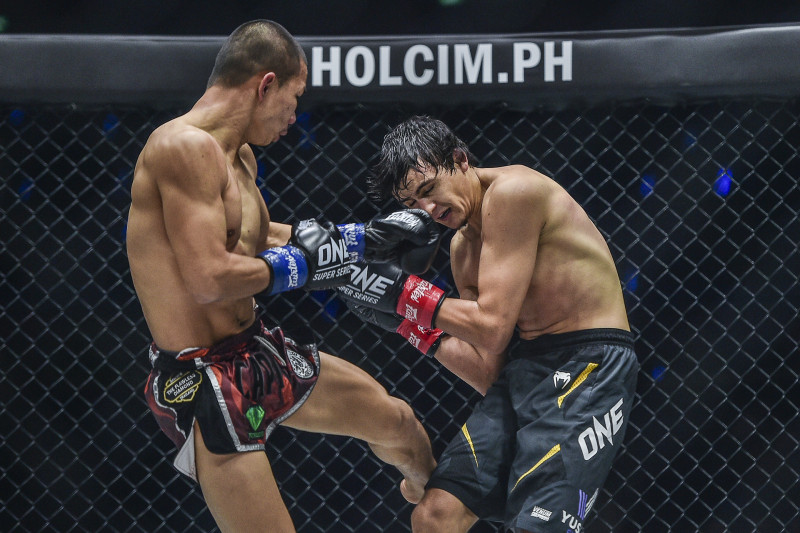 カピタンの強烈なロー!被弾し苦しい表情のラマザノフ(右)©️ONE Championship