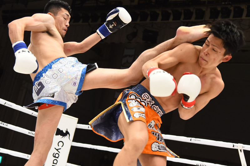 竹内のハイキックをギリギリかわす竹内