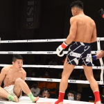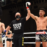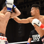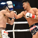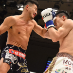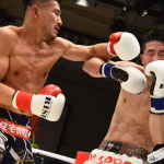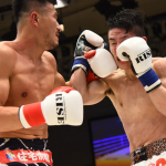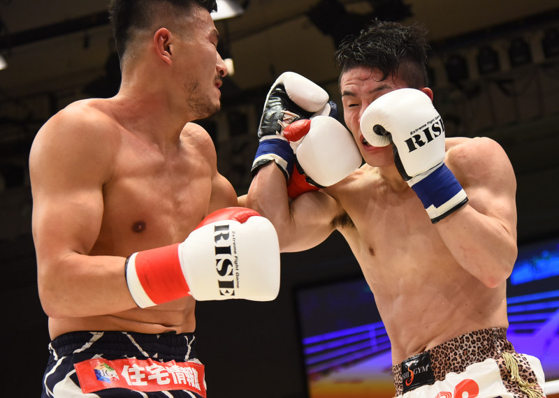タフな小川(右)から2度のダウンを奪って勝利した北井(左)