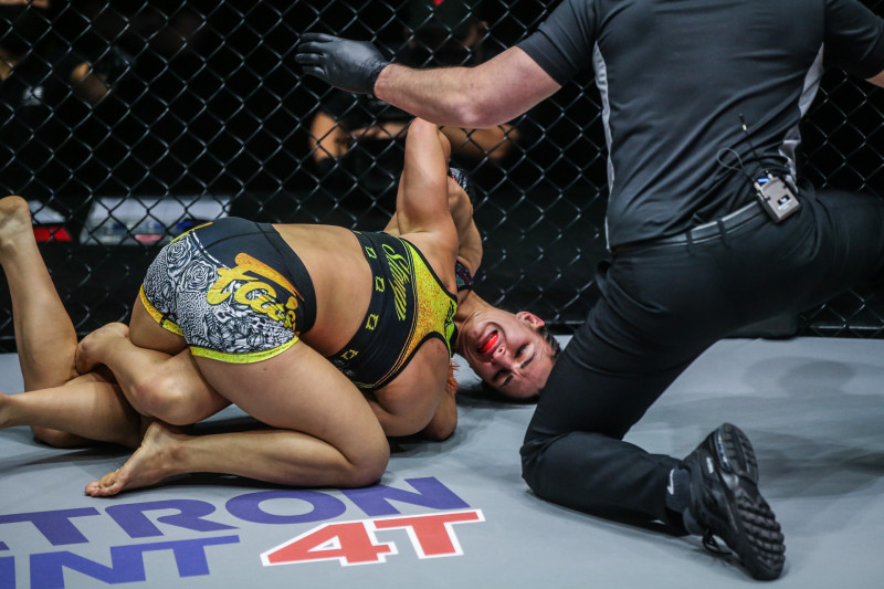 試合残りわずか、首を絞めあげるラソヒナ©️ONE