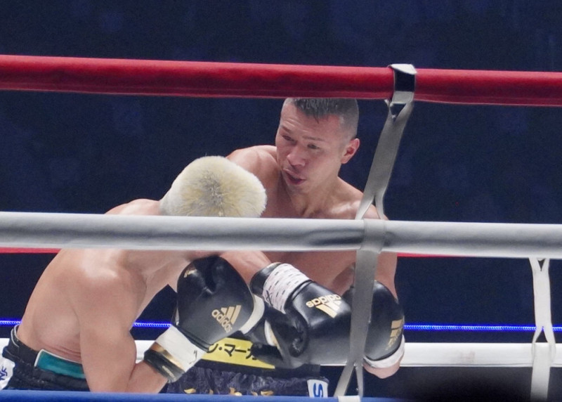 最終ラウンド、ヘッドギアを外して臨んだ坂と打ち合う内山