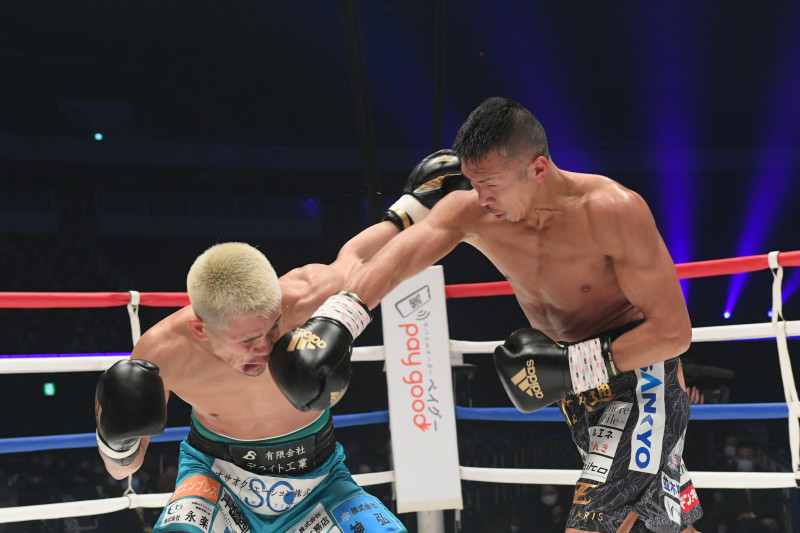 最終ラウンド、ヘッドギアを外して臨んだ坂と打ち合う内山©LEGEND