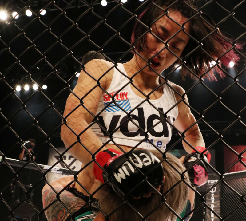 マウントパンチを叩き込む杉山