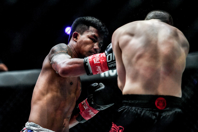 闘志剥き出しでパンチを叩き込むロッタン(左)©️ONE
