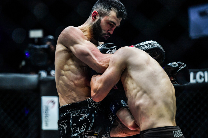 強烈なヒザを突き刺すペトロシアン(左)©️ONE