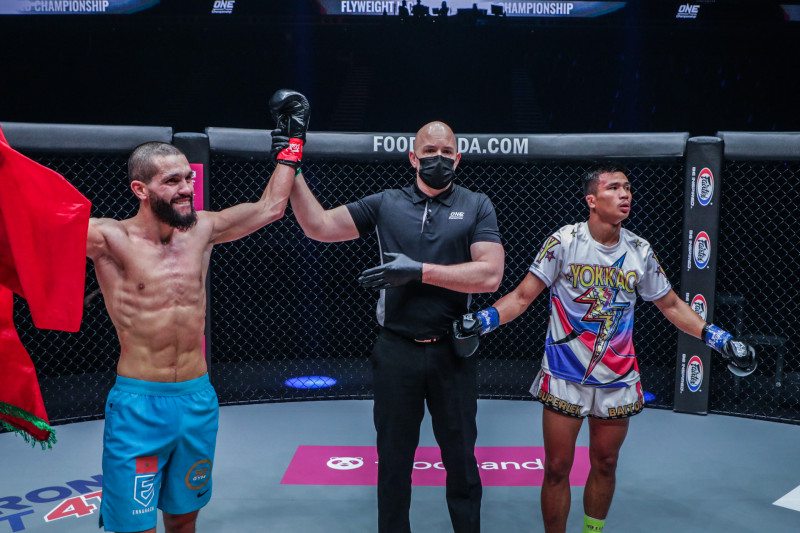 防衛成功に喜ぶエナッシ(左)©️ONE