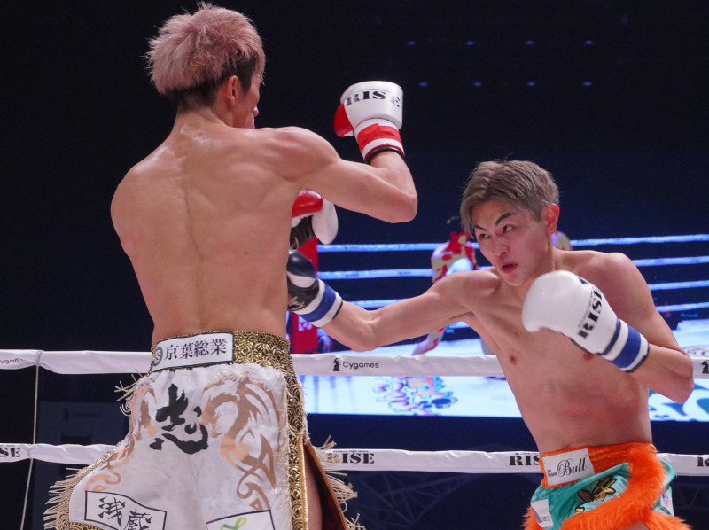 プロ2戦目とは思えないほど、積極果敢に攻める奥平(右)