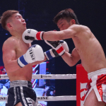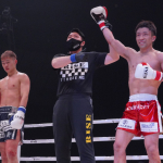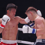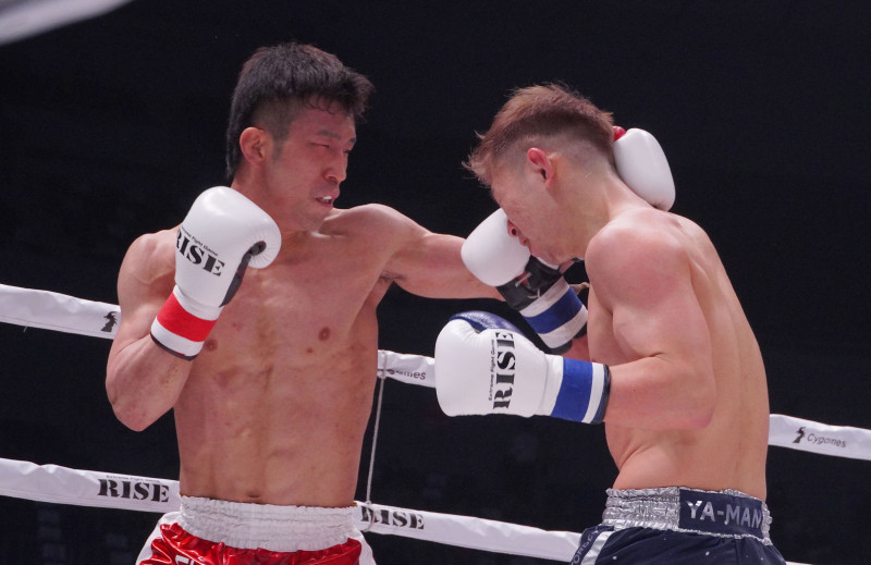 パンチで攻める平塚。ペースを握り判定勝利した