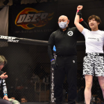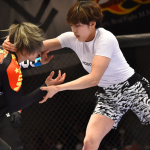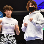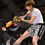 伊澤(左)と、ケガで欠場した本野美樹(右)本野が復帰からの再戦を誓った