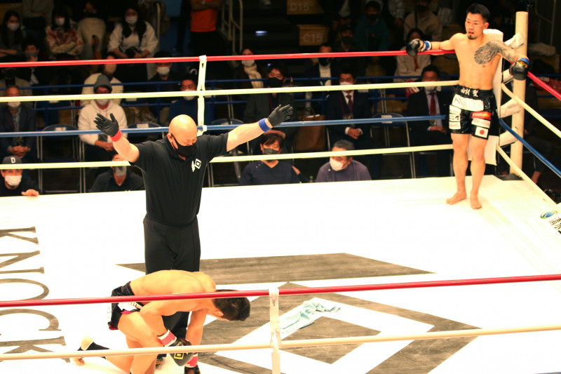 田村のパンチで2度目のダウン、セコンドからタオルが投入された瞬間