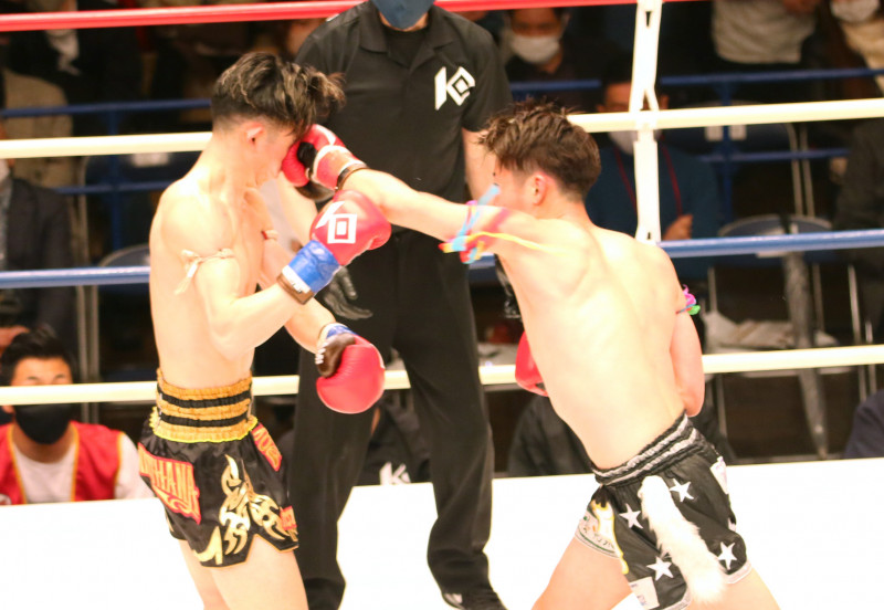 壱の左ストレートがクリーンヒットする
