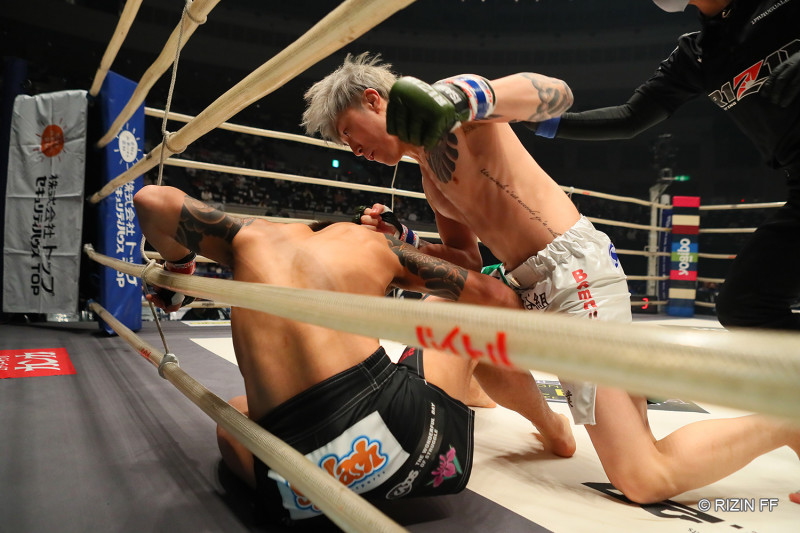 追撃しようとする伊藤に、レフェリーが止めに入る