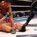山本の飛びヒザに合わせて村元がカウンター!