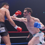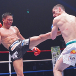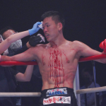 流血しながら鈴木(左)はトファネリと打ち合う