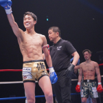 飛びヒザ蹴りでKO勝利、東本の額を割った瓦田