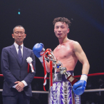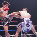 ボクシング譲りのアッパーをヒットさせる篠塚